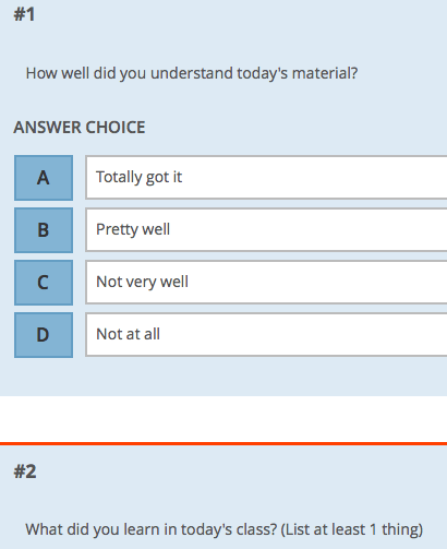 Lecturer Skye Cleary’s course in the School of Professional Studies uses the audience response system (Socrative) to check for understanding from assigned reading and to get immediate course feedback. Through using ARS, she can get a sense of whether her students did the reading and if they understood the important points. The ability to receive anonymous responses also gives her the opportunity to ask for course feedback right after a lecture rather than waiting until the end of the semester. This allows her to make adjustments from class to class to make sure students are grasping important concepts before moving onto other topics in the course.